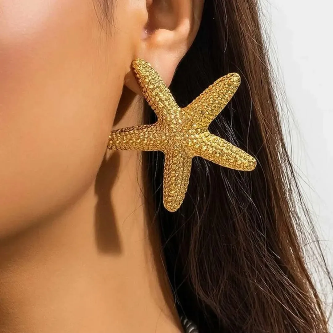 Boucles d'Oreilles Étoile de Mer en Acier Inoxydable Plaqué Or 18 Carats – Style Bohème et Été